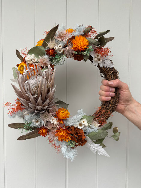 These floral wreaths are made with beautiful dried and preserved produce, and will last forever if looked after! We started creating these for Christmas, but now people are buying them to hang year round!